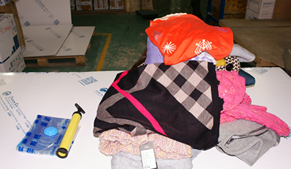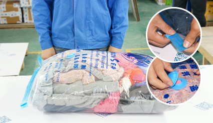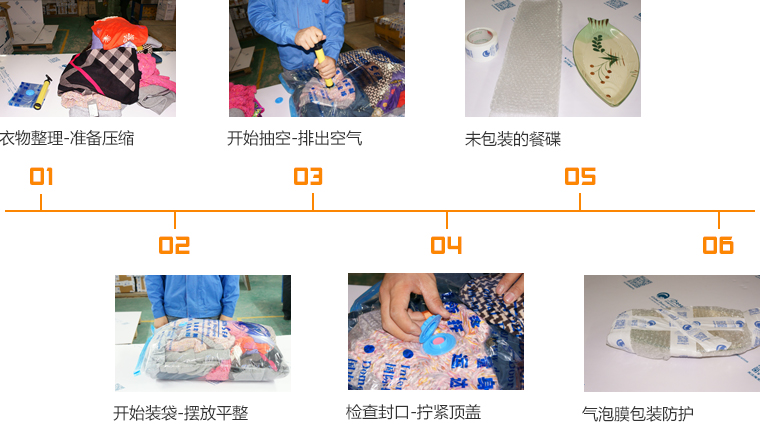 將整理好的物品疊整齊后逐一放入真空袋,要放置平整,確保在抽空時(shí)不會(huì)部分突起.