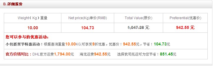 海龍的郵寄價格:(圖以廣東省廣州市為起運地點)當然郵寄食品必須通過特殊渠道