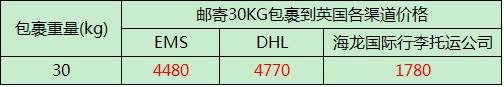 如上圖示所示,大家可以清晰的看到通過(guò)海龍國(guó)際行李托運(yùn)公司寄包裹到英國(guó)的價(jià)格比DHL,EMS國(guó)際快遞便宜了一大截,以上價(jià)格都是實(shí)際報(bào)價(jià),沒(méi)有任何虛假成分在內(nèi),不相信您可以