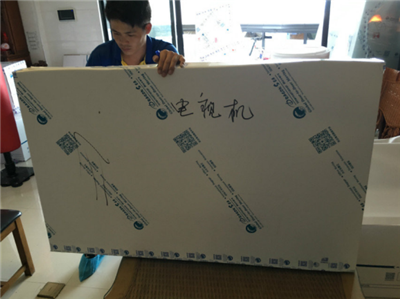 第二步:棉白紙均勻包裹電視機,防刮花。
