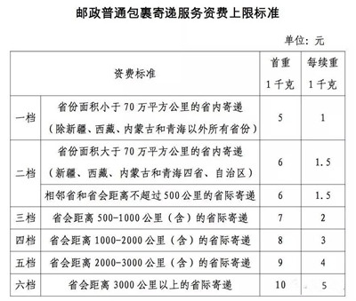 郵政普通包裹寄遞服務(wù)資費(fèi)按照省級(jí)行政區(qū)劃、省會(huì)城市之間郵運(yùn)距離,設(shè)置31個(gè)計(jì)費(fèi)區(qū)、6檔資費(fèi),區(qū)分首重、續(xù)重計(jì)費(fèi),首重、續(xù)重計(jì)費(fèi)單位重量均為1千克,不再另收掛號(hào)費(fèi)。通知要求,郵政企業(yè)要嚴(yán)格執(zhí)行本通知郵政普通包裹寄遞服務(wù)資費(fèi)標(biāo)準(zhǔn)規(guī)定。對(duì)因資費(fèi)結(jié)構(gòu)調(diào)整郵資下降的線路,不得不降或少降資費(fèi);對(duì)個(gè)別郵資上漲的線路,要充分考慮市場供求競爭狀況、用戶承受能力等因素,通過采取資費(fèi)下浮措施,合理控制實(shí)際郵資漲幅。