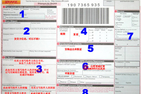 如何DHL國(guó)際快遞單填寫,很多人都不知道怎么下手,因?yàn)閲?guó)際快遞單一般是純英文的,實(shí)際上填寫一次后你就會(huì)發(fā)現(xiàn),國(guó)際快遞單填寫跟國(guó)內(nèi)快遞單填寫差不多了,下面我來具體講解下國(guó)際快遞單填寫方法與細(xì)節(jié)。