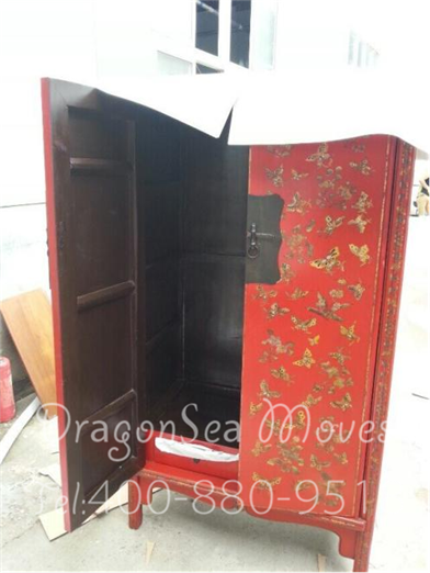 這是公司8月30號做的一個(gè)單子,客戶是從北京跨國海運(yùn)搬家到美國的??蛻舻募揖叨急容^有特色,絕大部分是中式仿古的,有些一看就知道有些年月了,但還算不上古董,木料也用得好,美中不足的是督導(dǎo)上門包裝的時(shí)候材料帶少了,部分家具只能做好防震包裝回公司返工了...