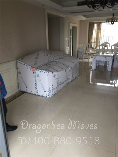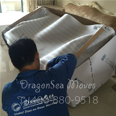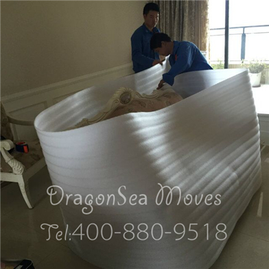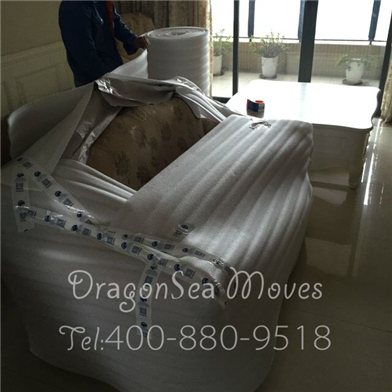 開工包裝沙發(fā),先用珍珠棉包裹沙發(fā),圍兩圈: