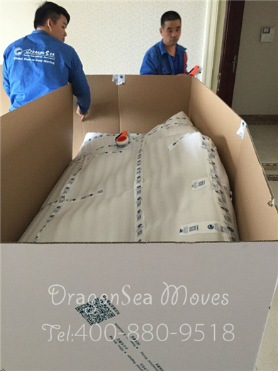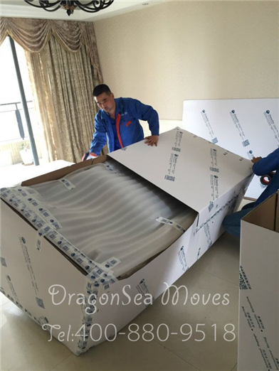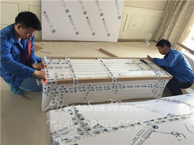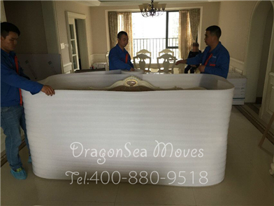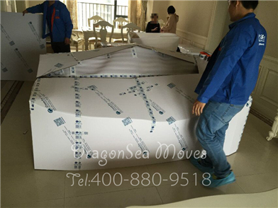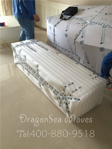 處理完畢后兩人把電視柜抬到珍珠棉上準備做整體包裝: