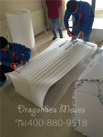 首先使用珍珠棉包裹電視柜: