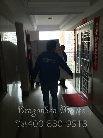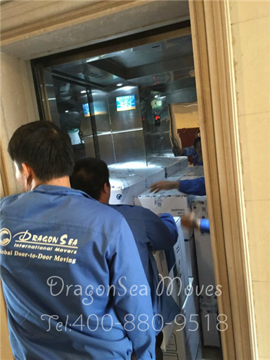 開始轉(zhuǎn)運,師傅們先把小件物品轉(zhuǎn)運下樓: