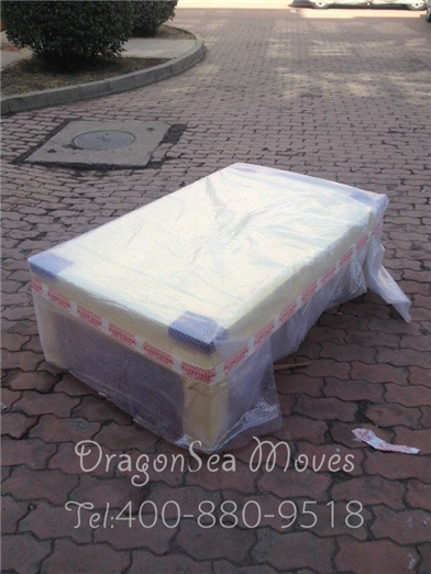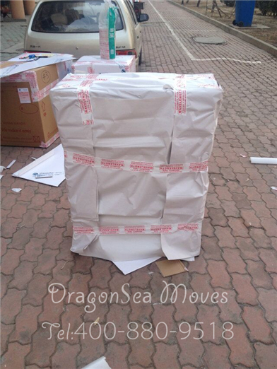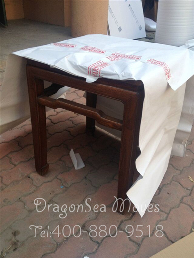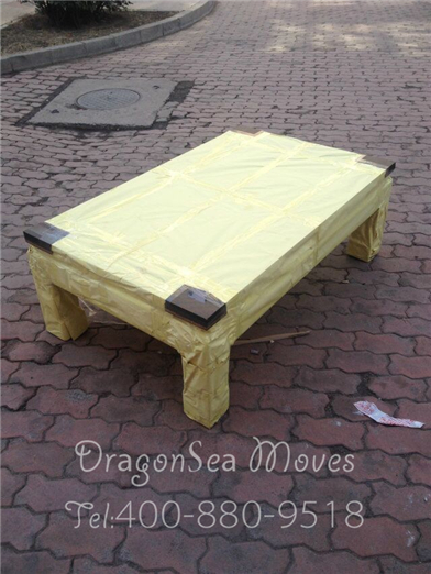 開始包裝了,客戶家太小擺不開,部分家具都搬下樓包裝了,小茶幾綿白紙打底中