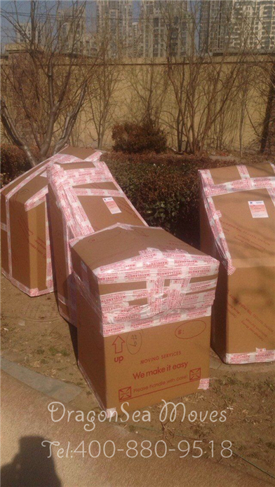 這些都是包裝完畢的家具,等待集裝箱掛車過來后直接裝柜,從客戶家拉走