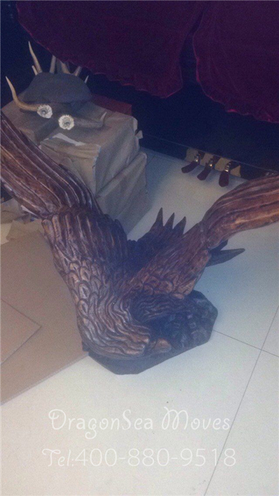客戶家那只根雕老鷹等待包裝