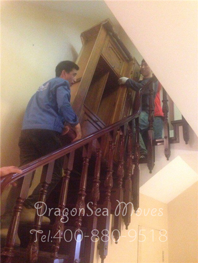 包裝工人們把家具往樓下抬,好家具還是比較重的