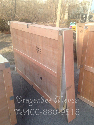 為鏡子量身定做的木箱,包裹好珍珠棉的鏡子塞進(jìn)去,封口后釘好,客戶有不少家具要求有打木箱,這些都是我們量身定做好從北京帶過來的,現(xiàn)場(chǎng)包裝,現(xiàn)場(chǎng)裝訂