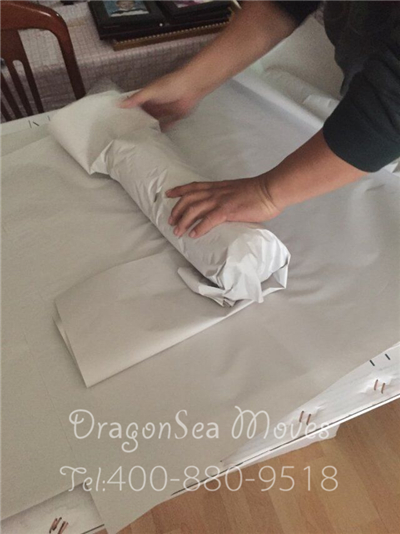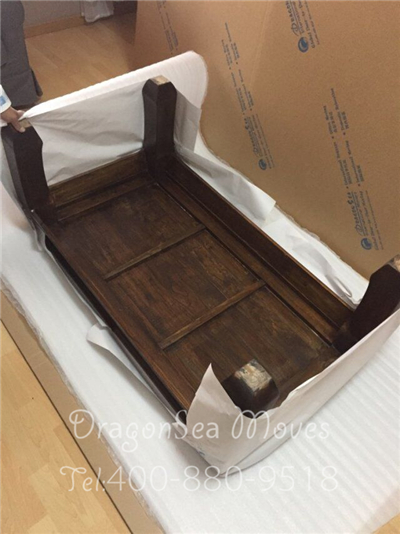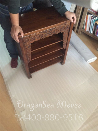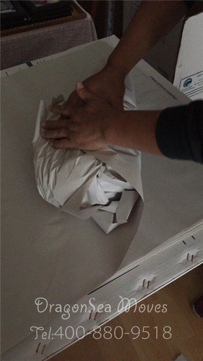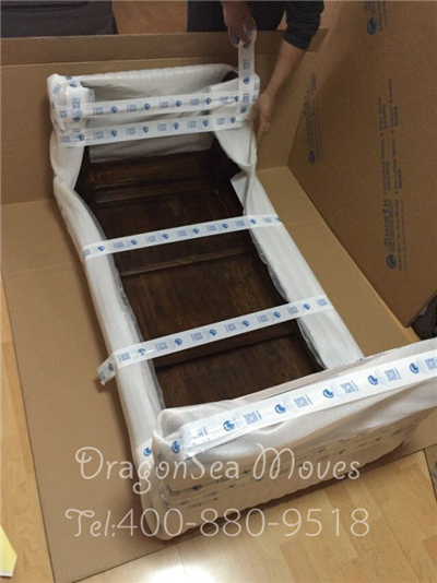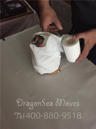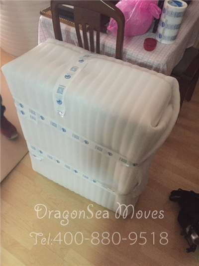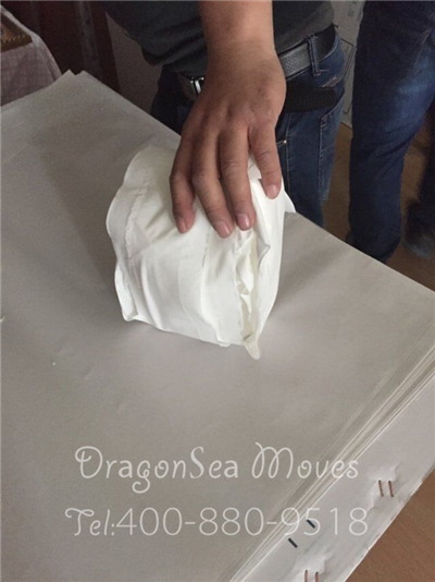 針對這類小型不可拆卸的家具,首先我們會將家具內(nèi)的物品全部清空,抽屜及柜門處使用棉白紙卡緊,整體棉白紙覆蓋保護漆面,然后使用珍珠棉進行整體包裹防震處理,最后制作外層包裝。