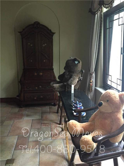 客戶家里主要以中式家具居多,上面放著兩只布娃娃,很有趣味。