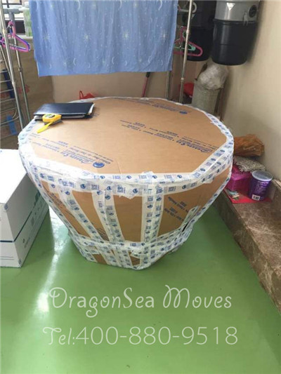 珍珠棉包裹桌子,作防震處理,用膠帶固定粘好。