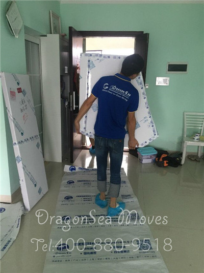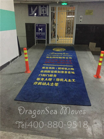 在客戶(hù)家樓下,鋪上海龍專(zhuān)用地毯,開(kāi)始進(jìn)行上門(mén)包裝。