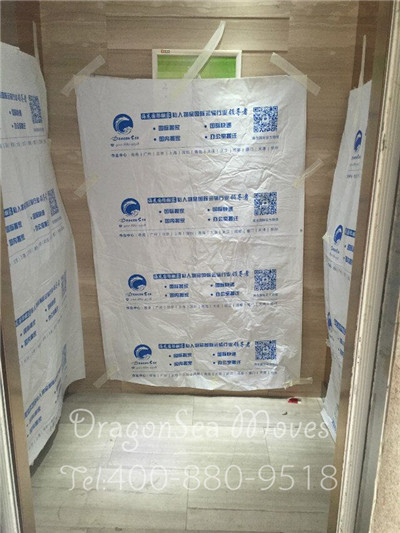 電梯四周貼上了布,防止搬運(yùn)物品時(shí),剮蹭電梯壁。