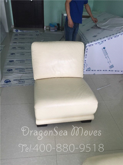 包裝師傅把小沙發(fā)上的物品拿開(kāi)。