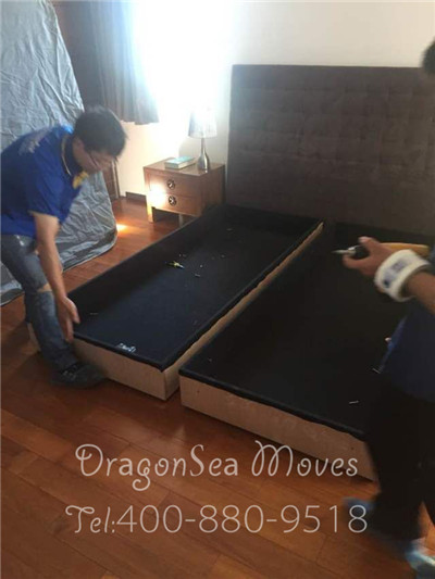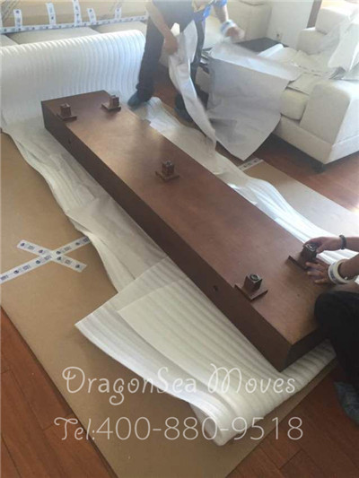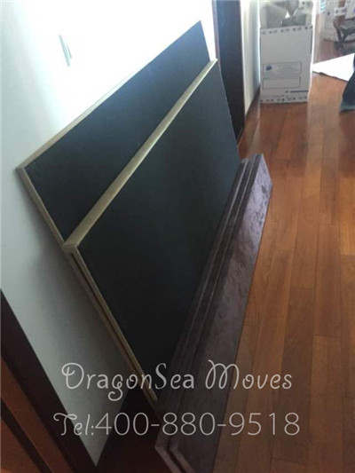 這個(gè)大尺寸的木床屬于大型家具,在北京海運(yùn)家具到臺(tái)灣基隆運(yùn)輸?shù)倪^程中不方便,會(huì)增加運(yùn)輸體積。所以,我們的包裝師傅很聰明的將大床拆卸成各個(gè)部件,然后進(jìn)行分別包裝。比如說床架的包裝,先用棉白紙打底,進(jìn)行包裹,主要用于內(nèi)層保護(hù),防止掉漆,更好的保護(hù)家具不受破損。接下來用珍珠棉包裹,珍珠棉是很好的緩沖材料,可以有效的防震。最后才是用包裝紙箱加固,我們定制的專用紙板,材料比一般的紙箱好很多,放心運(yùn)輸。