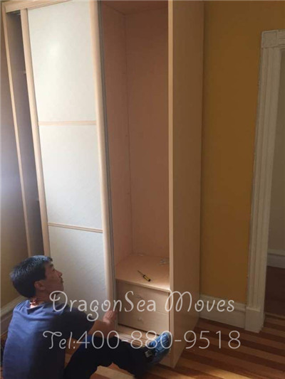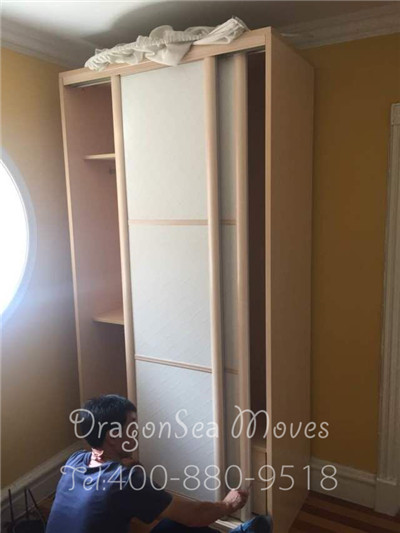 這種立柜的包裝主要考慮表面的防潮防震處理,表面光滑沒有太多的紋路,并且因?yàn)榭蛻羰?0尺集裝箱整柜國際搬家到臺(tái)灣,所以在運(yùn)輸過程中的顛簸會(huì)小很多。因此,選擇常規(guī)的包裝,嚴(yán)格按照棉白紙-珍珠棉-五層紙板的流程方式進(jìn)行操作即可。