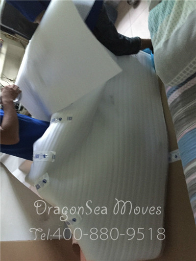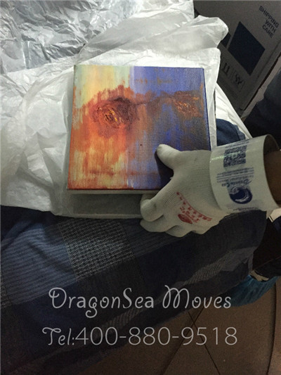 客戶家里的油畫色彩豐富、畫工精湛,是一幅很不錯的藝術(shù)品,很具有收藏價值。只是,油畫是屬于易碎物品,需要仔細包裝,才能保護油畫海運到美國芝加哥的安全。首先,用棉白紙包裹油畫,防止畫面弄臟或者受潮。然后用珍珠棉包裹兩層,給油畫作防震處理。接著用五層紙板給物品作外包裝,用封箱膠帶封口,保障油畫在海運門到門到美國休斯頓的安全。