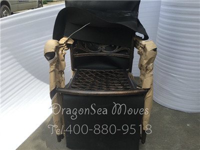 佛山海運(yùn)門到門到美國,眼前的這個扶手椅為金屬家具,質(zhì)地極為堅硬,非常牢固,靠背的雕花也很精細(xì)、美觀。為了保護(hù)扶手椅的安全,先用棉白紙包裝,棉白紙能有效防刮花。之后,再用珍珠棉包裹兩層,珍珠棉有很好的抗撞力,用其包裝,可以很好的避免在搬運(yùn)到美國的途中出現(xiàn)損壞。我司海運(yùn)專用的硬紙板抗壓力好,能更好的保障扶手椅在海運(yùn)到美國的安全。