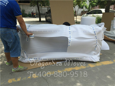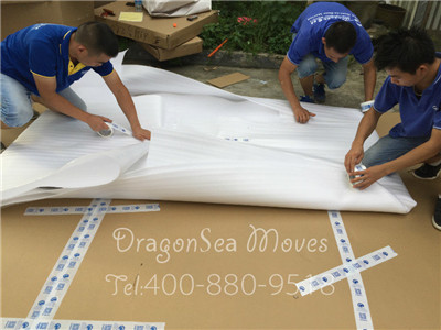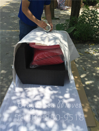 佛山海運(yùn)門到門到美國洛杉磯的客戶物品中,有很多藤制家具,藤制家具透氣性強(qiáng),手感清爽,質(zhì)樸的藤本色有助于安神定氣,夏天戶外桌椅多采用藤制家具,對于避暑睡眠都將大有益處。這么好的家具,自然包裝時要格外小心,首先,我們的包裝師傅用棉白紙對家具進(jìn)行整體包裹,棉白紙是很好的防潮吸濕的材料。然后用珍珠棉緊緊的包裹兩層,做防震處理,之后用五層紙板根據(jù)戶外桌的形狀進(jìn)行裁剪包裝,最后用強(qiáng)力封箱膠帶封口。