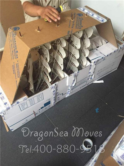 客戶家里有很多的工藝品擺件,包裝師傅需要非常認真的包裝才能保障這些易碎物品的安全。眼前這個帆船,設計巧妙、結(jié)構(gòu)精細。包裝師傅們擔心拆卸之后,會損壞帆船的造型,所以根據(jù)帆船的形狀來包裝,這一點讓客戶很滿意。