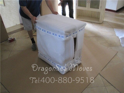 棉白紙打底,并填充柜子空隙,防止在運輸時晃動。珍珠棉包裹幾層,作防震處理。根據(jù)柜子的形狀裁剪五層紙板包裝,然后用封箱膠帶封口。