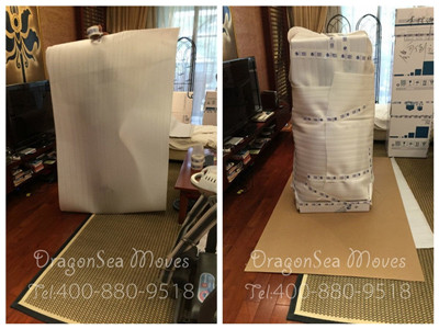 做工精細(xì)的工藝擺件擺放家中,能立刻彰顯主人的品味,是營(yíng)造家氛圍的點(diǎn)睛之筆。許先生不愧是藝術(shù)品的愛(ài)好者,各式各樣工藝擺件點(diǎn)綴著每一個(gè)房間。以下是兩款擺件的包裝,師傅細(xì)心地用棉白紙多層嚴(yán)實(shí)包裹,再用厚實(shí)的棉白紙?jiān)俅?60°環(huán)繞包裹,最后依據(jù)擺件的形狀裁剪紙箱包裝,保障工藝品從廣州國(guó)際海運(yùn)搬家到洛杉磯的安全。