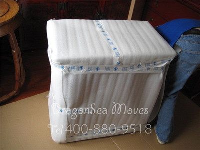 上海海運(yùn)門到門搬家到溫哥華,茶幾是家庭生活的必備用品,師傅嚴(yán)嚴(yán)實(shí)實(shí)將茶幾環(huán)繞包裹,做好護(hù)角措施,為茶幾的安全運(yùn)輸保駕護(hù)航。