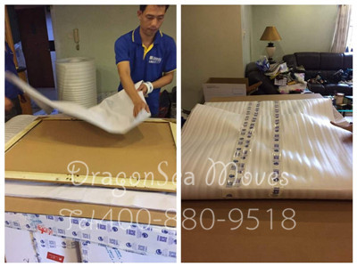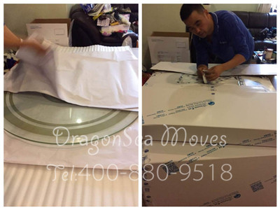 上海海運(yùn)私人物品國際搬家到新加坡,跟隨海龍國際的包裝師傅的上門包裝過程,首先我們看下客廳家具的包裝。