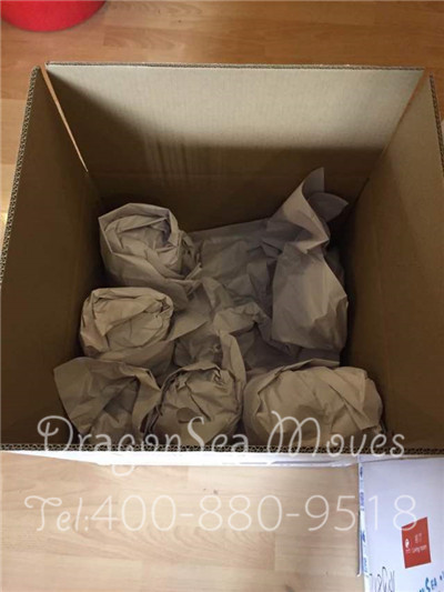 上海海運(yùn)私人物品國際搬家到新加坡,一杯子,一輩子,對待精致的小杯子,師傅用多張棉白紙將杯子里里外外環(huán)繞式包裹,再整齊放入紙箱,紙箱封箱前用棉白紙?zhí)畛淇p隙防碰撞。