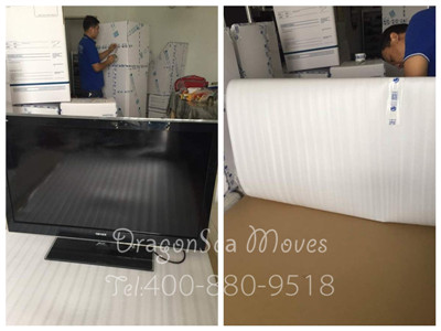 電視柜作為家庭必備家具,不是單一的擺放電視用途,還有集機(jī)頂盒、DVD、音響設(shè)備、碟片等產(chǎn)品收納和擺放。師傅將電視柜擦拭干凈后才包裝,首先將棉白紙放在抽屜接觸口,防止運(yùn)輸過(guò)程中碰撞產(chǎn)生摩擦,接著用棉白紙和珍珠棉全面均勻包裹電視柜,然后使用護(hù)條保護(hù)電視柜邊邊角角,最后裁剪硬質(zhì)紙板作外層防護(hù)。