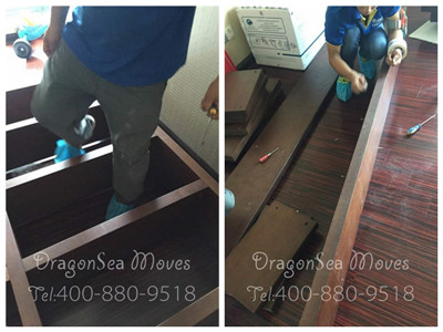 杭州私人物品托運(yùn)搬家到美國,由實(shí)木和玻璃鐵架組合的書桌,采用拆卸包裝方式,如此更能保障書桌的安全。