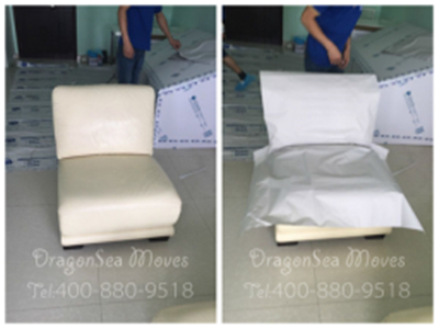 廣州國際搬運(yùn)家具至美國的物品中有一套雙人沙發(fā),包裝的難度和椅子相當(dāng),棉白紙+珍珠棉+紙板,包裝輕松且完美。
