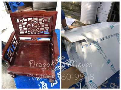 椅子是搬家中最常見的家具之一,對(duì)于陸先生家這款設(shè)計(jì)精美的紅木椅子,包裝師傅幾個(gè)步驟將椅子完成包裝。