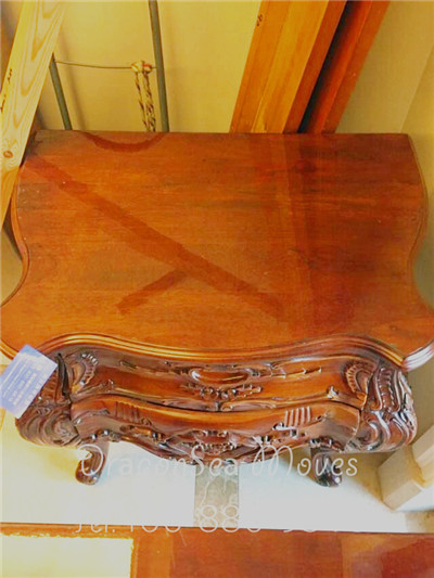 實木雕花的茶幾,顯得尊貴又富有自然氣息。用棉白紙以及珍珠棉緊緊貼邊包裹以后,用PV帶打包,防止包裝材料脫落。最后用五層紙板,根據(jù)茶幾形狀剪裁包裝完畢。