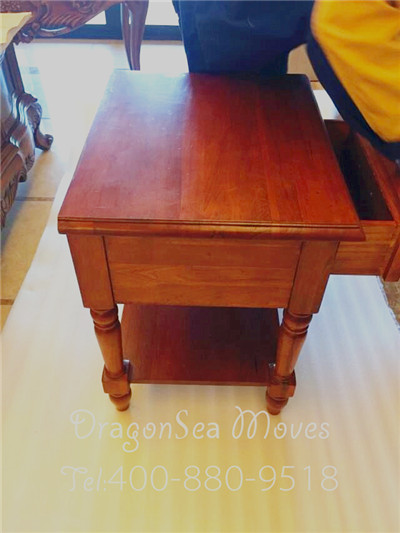 床頭柜一般帶有一個抽屜,作為放小件物品的容器。在包裝之前,要將抽屜清空,如有物品需給客戶。里面再塞上些棉白紙,房子抽屜在運輸?shù)倪^程中晃動。
