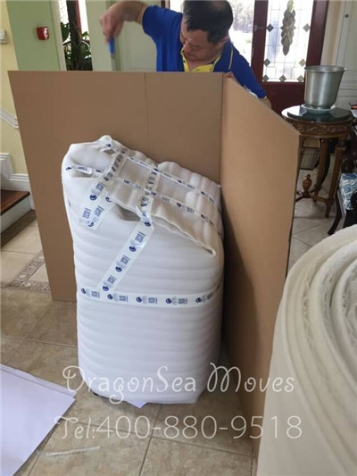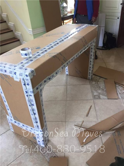 高挑的桌角,襯托的桌子修長玉立,有點(diǎn)像供桌,這次搬家到美國,需要妥善的保護(hù)。先用棉白紙打底,珍珠棉防震,然后用軟護(hù)條保護(hù)邊角,不讓家具受損害。