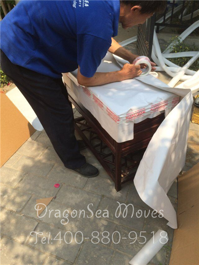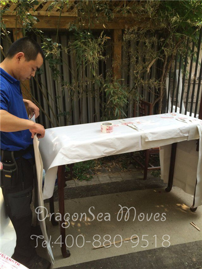 師傅正在給家具包裹綿白紙