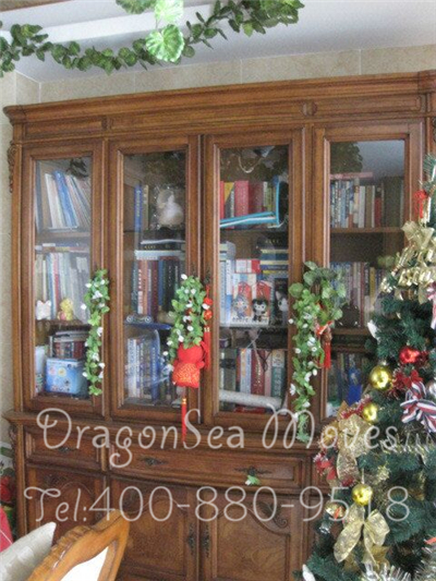 看看客戶的書柜,滿滿當當,書柜外面掛滿了綠色裝飾,旁邊還有一顆圣誕樹~