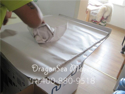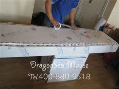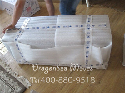 使用珍珠棉對家具進行包裹,封箱膠帶纏繞加固