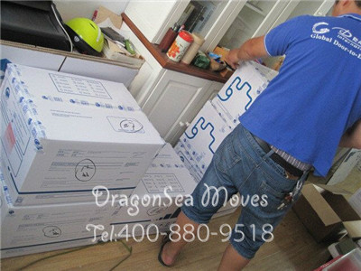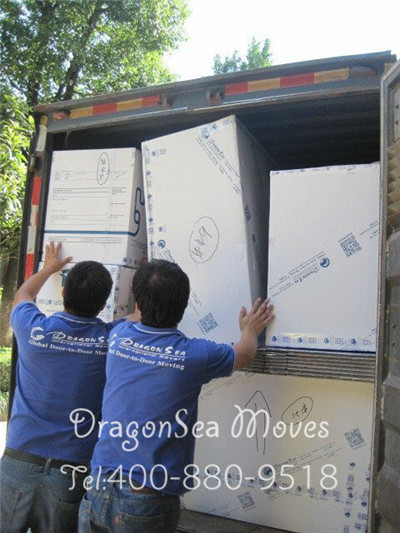 包裝完畢后,需要先中轉(zhuǎn)至我司倉庫,然后再根據(jù)搬家計劃安排海運,包裝工人已經(jīng)把物品裝車完畢了