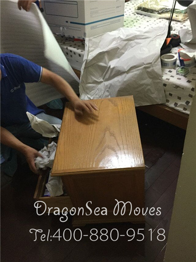 這是客戶家的床頭柜,屬于無需拆卸的小型家具,針對床頭柜,我們的包裝方法是先清空床頭柜內(nèi)的所有物品,空置的床頭柜使用綿白紙揉成團(tuán)進(jìn)行填充,有一個(gè)必須要注意的地方是將床頭柜的拉環(huán)拆下來反裝,這種做法可以保護(hù)拉環(huán)在搬運(yùn)過程中由于剮蹭造成的損壞。