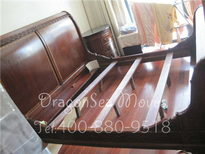 這是9.21日的一個國際搬家訂單,客戶需要從上海搬到美國洛杉磯的家具中有不少造型都古樸,針對這類家具的海運搬家運輸,我們首先要做的是對不同的家具有針對性的進行保護,這個步驟包括了零碎物品的收納,小型家具的整體包裝以及大件組合家具比如床,大型衣柜等等的拆卸及包裝作業(yè),經(jīng)過我們包裝師傅的處理,可以保證家具在惡劣的長途海運搬家過程中的安全,下面我們來看看從上海海運搬家到美國洛杉磯是怎么進行的。