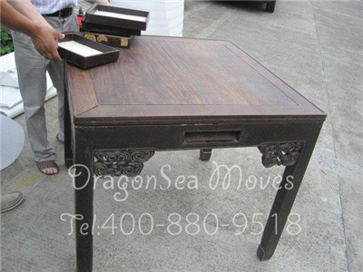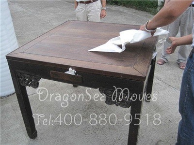 客戶的物品有方凳、八仙桌、雕花樟木箱及茶幾等,由于物品不多,我們選擇了將客戶的物品運(yùn)至樓下包裝,避免將客戶家中弄臟。