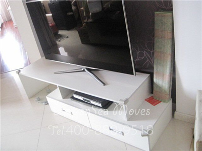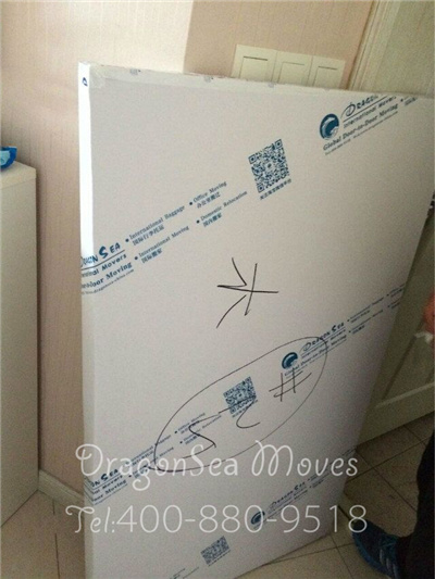 平板電視在包裝之前先要拆掉電視底部的架子,然后使用珍珠棉進行整體包裹,最后制作外包裝,當然如果客戶選擇的是散貨或集中托運服務,電器類及易碎易損物品等我們一般會建議客戶定制免熏蒸木箱,這位客戶就是這樣的,所以我們在物品包裝好后在需要制作木箱的家具表面做了記號,下面是平板電視包裝圖: