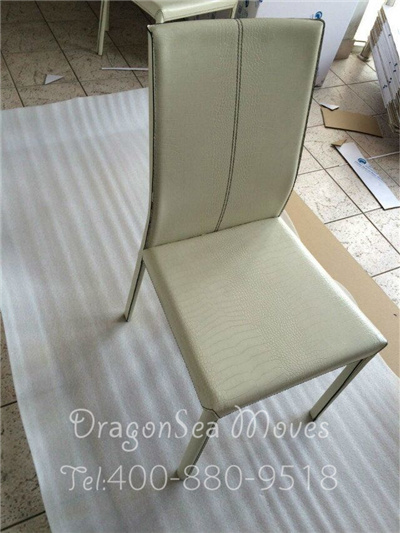 餐椅、太師椅、沙發(fā)椅是國際搬家時最常見的一類家具,可以說這類家具的包裝每個師傅的處理方法都不一樣,當然目的是一樣的,通過自己的包裝保障客戶物品的安全,我們來看看這次師傅是怎么處理餐椅的: