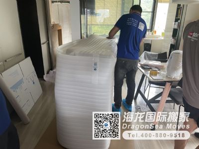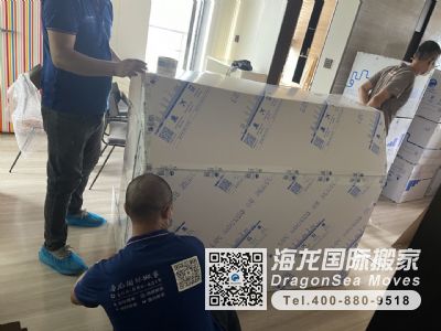 國際搬家龍頭企業(yè)果然就是不一樣,無論包裝的材料和包裝工人的專業(yè)性,都是我們目前看到最好的,師傅有條不紊的開展包裝, 邊角使用硬質(zhì)護(hù)角做好防護(hù),在使用專用紙板進(jìn)行包裝,感謝現(xiàn)場幾位師傅和陳督導(dǎo)的服務(wù),也感謝客服顧問袁經(jīng)理,后面的就交給你們了,祝海龍生意興??!